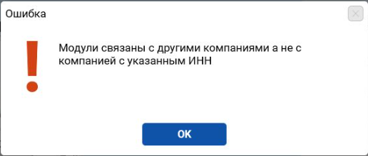 При регистрации сообщение "Модули связаны с другими компаниями а не с компанией с указанным ИНН"