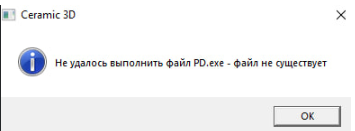 Обновите программу до актуальной версии по инструкции. Файл PD.exe- это файл автообновления программы, скорее всего он устарел или его нет в папке Ceramic3D