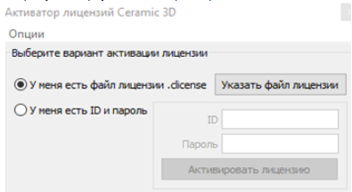 При запуске программы сообщение "Активатор лицензий Ceramic3D"