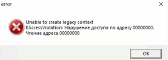 unable to create legacy context EAccessViolation: Нарушение доступа по адресу 00000000. Чтение адреса 00000000